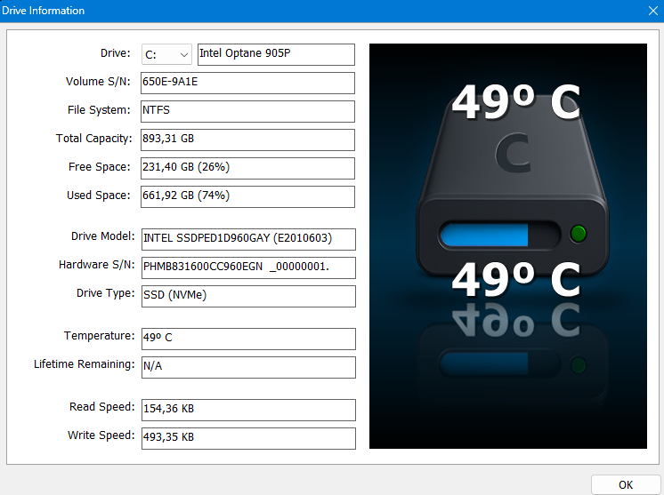 Two of my four drives could not show the Lifetime Remaining, but that is an option I would not use anyway. They were a Western Digital mechanical drive and a Crucial SSD.