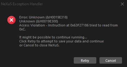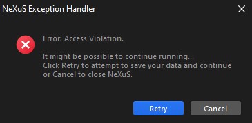 Post subject: Windows 10 NeXuS 20.10 and other versions access violation