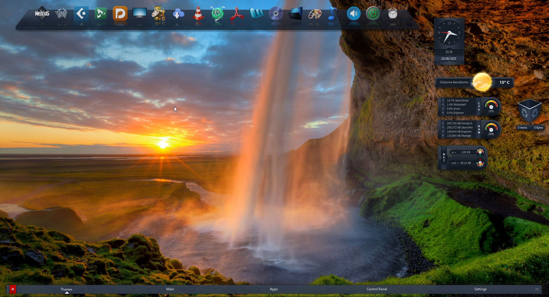 Now, what I generally expect from a GUI is that it should follow the principle of form follows function, is clear and uncluttered, and intuitive to use. This starts with a clear, simple, non-distracting background or 'wallpaper'. Most of the time it will be covered by various programmes' windows, unless you like to spend a lot of time just gazing at it. I don't, I like to be productive and bugger off from the computer as quickly as possible. I also don't expect to see a plethora of desktop modules and other small apps cluttering up my workspace. As in so many things, less is more.